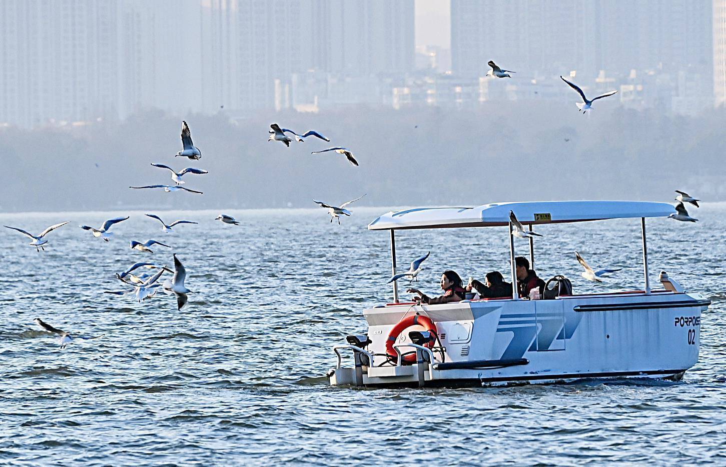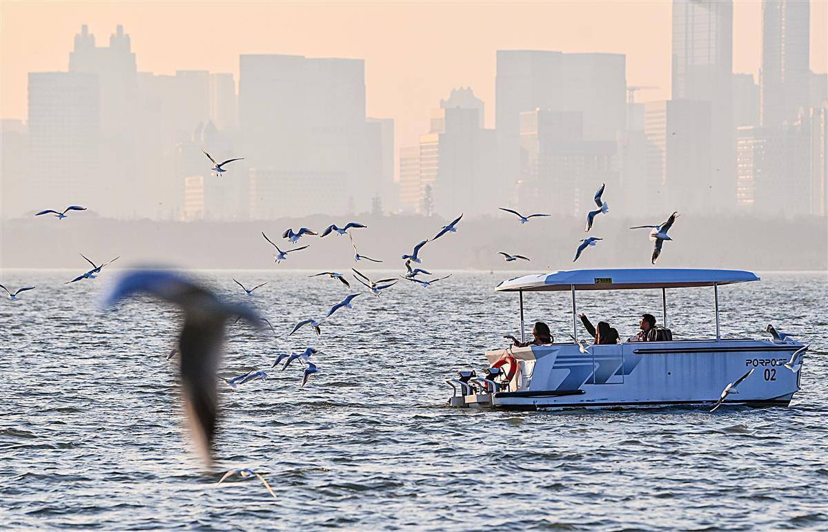 1月9日,很多市民搭客在武汉东湖磨山的湖边和往复楚风园与磨山的游船上喂红嘴鸥,引来成群的红嘴鸥抢食的景不雅。额外是在游船上的乘客,不错近距离相遇这群可人的精灵,看红嘴鸥伴着游船翩跹飞翔,千里浸式感受东湖冬日特有的生态之好意思。每年的冬天,成群的西伯利亚“白色精灵”红嘴鸥如约抵达武汉东湖,开启越冬之旅。(湖北日报全媒记者 朱熙勇 摄)