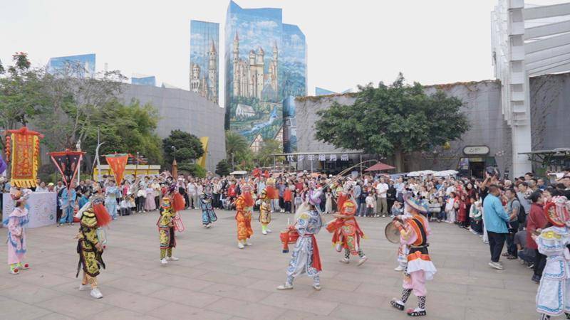 本日上昼11时,伴跟着铿锵锣饱读,开园秀精彩献技。舞龙舞狮腾踊生风,潮汕英歌舞坚忍粗豪,东北秧歌欢快利弊,踩高跷扮演惊惧灵动……南北俗例绝活挨次亮相,已而烽火现场仇怨,游客纷繁存身拍照、饱读掌喝彩。