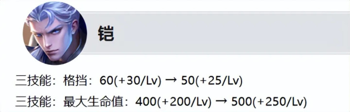 铠改换:大招格挡值责难,大招生命值加多。