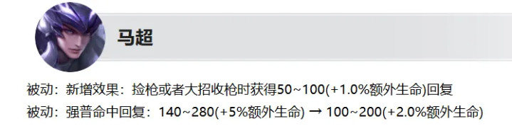 马超加强:被迫新增捡枪也能回血,被迫强普回血变少。