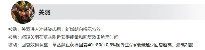 关羽加强:被迫回血更快更多,后期团战操作更踏实。