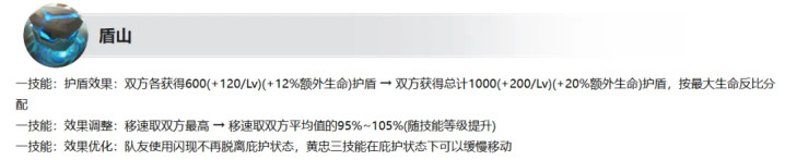 盾山减弱:1妙技给C位的护盾更厚,1妙技的极限移速责难,1妙技优化后可适配更多灵活硬汉。