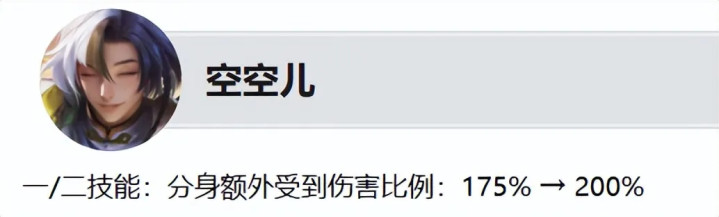 空空儿减弱:1/2妙技的分身受伤比例加多,分身坦度责难。