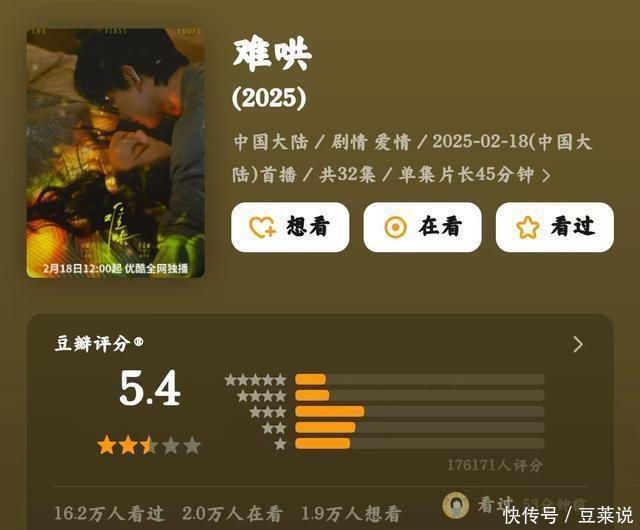 故事悬浮、剧情离谱、演技狼藉不皆,三不雅更是歪到没边,央视也该把把关,别再播这种传递放纵价值不雅的剧了! 第四名,《难哄》,5.4分 这剧的男女主好不好哄我不知说念,归正我看完后是挺难哄的,内娱现偶的底线怕是被这部剧刷新了下限。