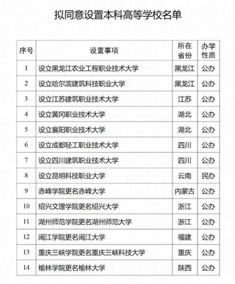 1月12日赌钱app下载,素养部官网发布《对于拟喜悦竖立本科高档学校的公示》,14所本科大学榜上著明,其中6所处所院校为改名,黑龙江农业工程管事时间大学等8所为新建立的“管事大学”。