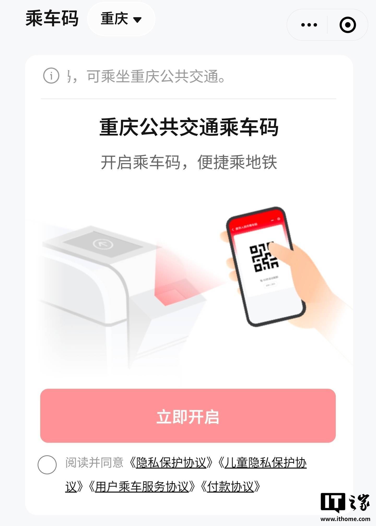 搭车区域选重庆,喜悦公约并绽开,生成搭车码。