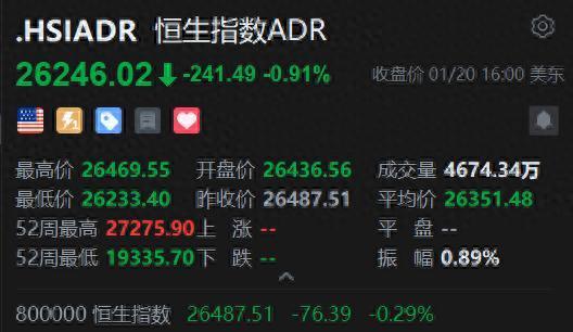 智通财经APP获悉,周二,好意思股三大指数集体收跌。恒生指数ADR下落,按比例蓄意,收报26246.02点赌钱赚钱软件官方登录,较香港收市跌241.49点或0.91%。