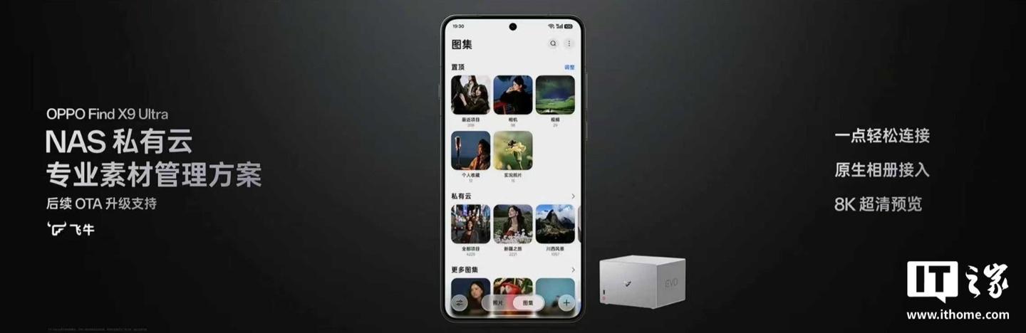 OPPO Find X9 Ultra 手机已于昨晚正经发布。这款旗舰新机官宣将复古 NAS 专有云专科素材贬责决策(后续 OTA 复古),提供少量连气儿、原生相册接入、8K 超清预览等功能。