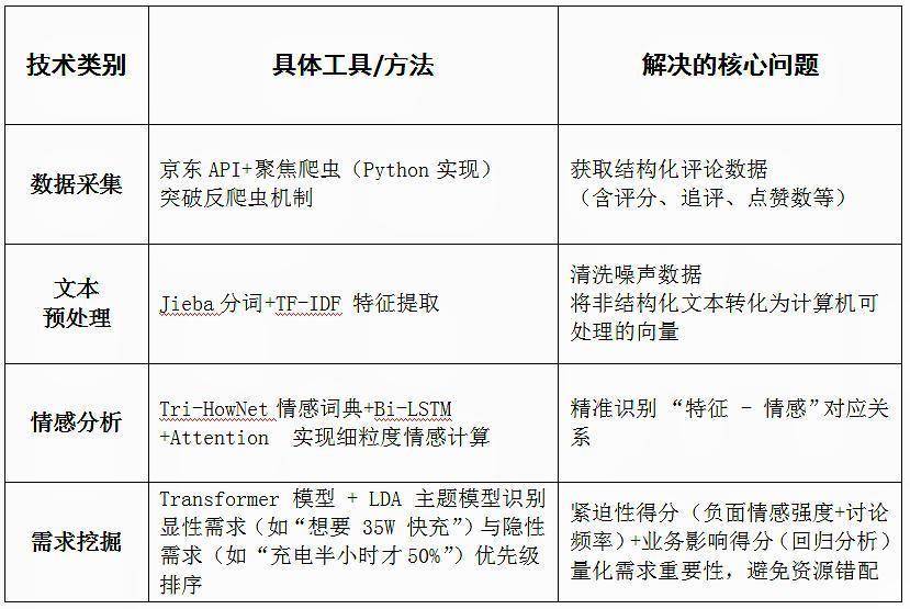 这些期间的组合,刚巧弥补了现存说合的不及:细粒度激情分析搞定 “精度低” 问题,多模态数据预留整合接口(未来可扩张),需求排序与战术生成搞定“落地难”问题。三、居品阅兵战术挖掘的完满旅途与实证基于上述分析,本说合构建 “四步走” 的居品阅兵战术挖掘框架,并以 iPhone 16 为案例进行实证考据,确保每一步王人可落地、可量化。第一步:数据处理 —— 从 “海量噪声” 到 “有用指摘”数据质地径直决定分析限度的可靠性,需通过 “汇注—清洗—筛选” 三层处理:数据汇注:通过京东怒放 API,汇注 iPhone 16 的 10 万条指摘(含指摘正文、评分、追评、点赞数、晒图 URL 等),遴选 “代理 IP + 就地延伸(苦求频率≤3QPS)” 应付反爬虫,确保数据完满性。数据清洗:去除告白(如 “店铺优惠斟酌客服”)、重迭指摘(复制粘贴的 “好评”),处理稀奇字符(如模样标记转为笔墨形色 “浅笑”→“兴隆”),最终保留 8.5 万条灵验文本。有用性筛选:遴选 “规矩 + 机器学习” 双重筛选。先以 “指摘长度≥20 字、点赞数≥5、含居品特征形色” 为规矩初筛,再用 TextCNN 模子对初筛限度进行二分类(“有用 / 毋庸”),最终得到 5 万条高价值指摘 —— 这些指摘涵盖 “屏幕”“电板”“摄像头” 等中枢特征,为后续分析奠定基础。第二步:激情分析 —— 从 “整形体调” 到 “特征激情值”这一步是中枢,需要精确策画用户对每个居品特征的激情倾向,具体分为两步:居品特征索求。通过 “词性标注(索求名词 / 名词短语)+ 时时花式挖掘”,从 5 万条指摘中识别出 iPhone 16 的 8 个中枢特征:屏幕、性能、摄像头、电板续航、充电速率、存储容量、系统体验、外不雅设想。举例,将 “流露屏”“屏幕分辨率” 合股归类为 “屏幕” 特征,幸免同义不同词的烦闷。激情倾向策画:聚首 Tri-HowNet 激情辞书(处理多语义激情词,如 “性价比高” 的 “高” 为正面,“价钱高” 的 “高” 为负面)与 Bi-LSTM 模子(捕捉高下文语义,如 “不以为充电慢” 中的含糊词),策画每个特征的激情倾向得分(界限 - 1 至 + 1,-1 为极负面,+1 为极正面),限度如下: